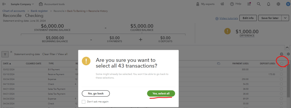 (=私はいつも銀行アカウントのReconcileは一番最後に行います)