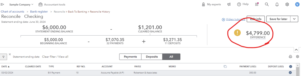 “あれ?銀行残高とQuickBooksの残高がマッチしない?”、